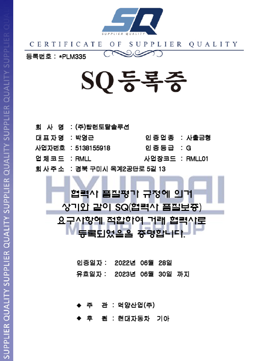 SQ TOPRUN TOTAL SOULTION SQ Certificate