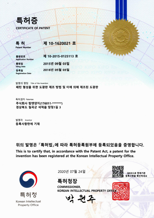 Patent[R&D] Patent (No. 10-1620021, Light guide panel manufacturing method for pa…